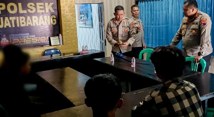 Kapolres Brebes AKBP Guntur Muhammad Tariq saat memberikan pembinaan kepada puluhan remaja yang diamankan